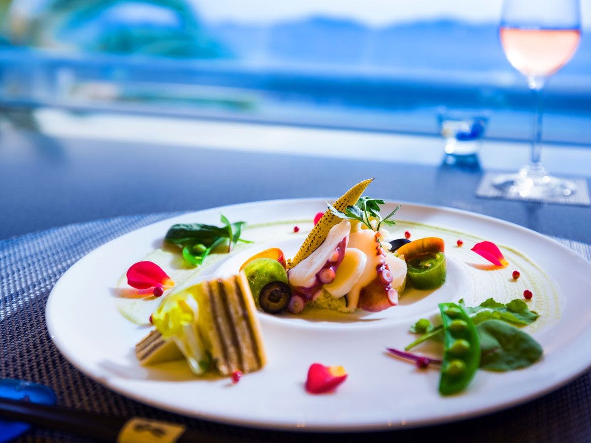 自然のあるがまま、自らのあるがまま、湾を臨む高台の眼下に広がる風景は、水平線が180度の弧を描く悠久のパノラマ。自然がそこに在るように、自分もここに在ることを知る瞬間です。食事は宿に隣接するささやかな農園で採られた様々な野菜が、食卓に彩りを添えます。