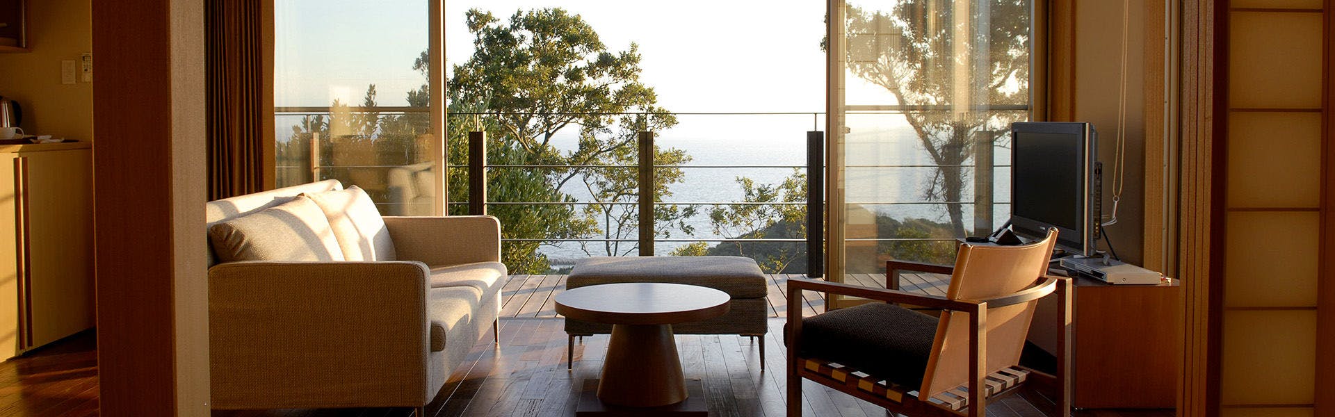 海と天と地。そして風が流れるだけの高台に佇む宿「知多半島 海のしょうげつ」。ここには、なくてはならないものだけがあります。 ここには、在ることが心に静寂を呼び、豊潤という名の芳香を微かに立てるものしかありません。 すべてのおもてなしは、気持ちよく心身を“空”にするために。 日々の喧騒から遠く離れて、あるがままに還る時間へ。
