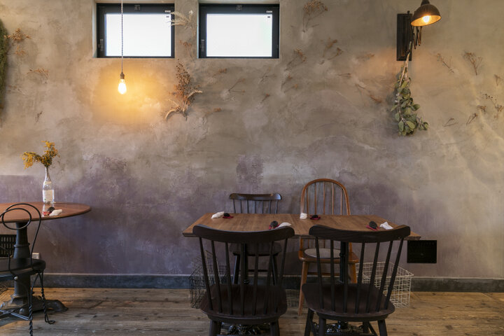 全体が落ち着いたトーンでまとまっているのは、テーブル際の壁がすべてグレーのマーブルに塗られているから。これは、内装を手掛ける時に、お客さんが料理を撮影する際、バックがじゃましないように…と意識して、この色を選んだそうです。 そして、トイレも要チェック。利用した人がみんな感動するという、心地よいスペースになっています。
