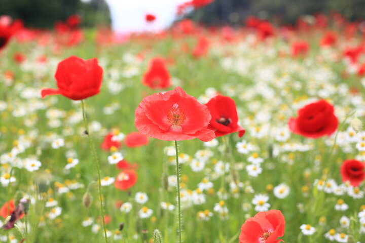 季節の花々でいっぱいになる、お花畑をのんびり散策
