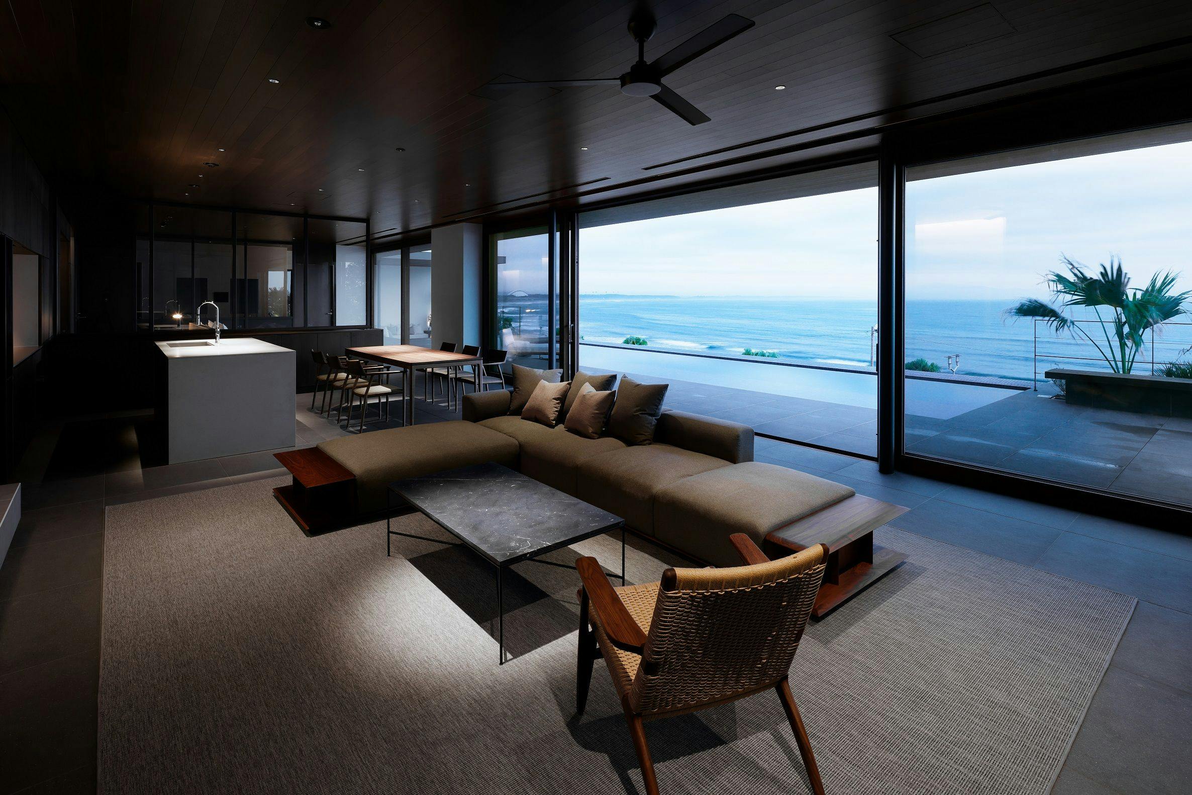 敷地内で唯一、1棟で独立した「MASTERPIECE」は屋内面積200平米に加え、テラスが560平米と最大規模。海に面したプライベートなテラスで、BBQや焚き火を楽しめます。2階に位置する「CHILL」は総面積193平米で、水平線とボーダレスに繋がるインフィニティプールが特徴です。「SURF」は海まで10秒というロケーション、「GARDEN」は庭に露天風呂を備えるなど、全4タイプそれぞれ特別な設備を揃えています。