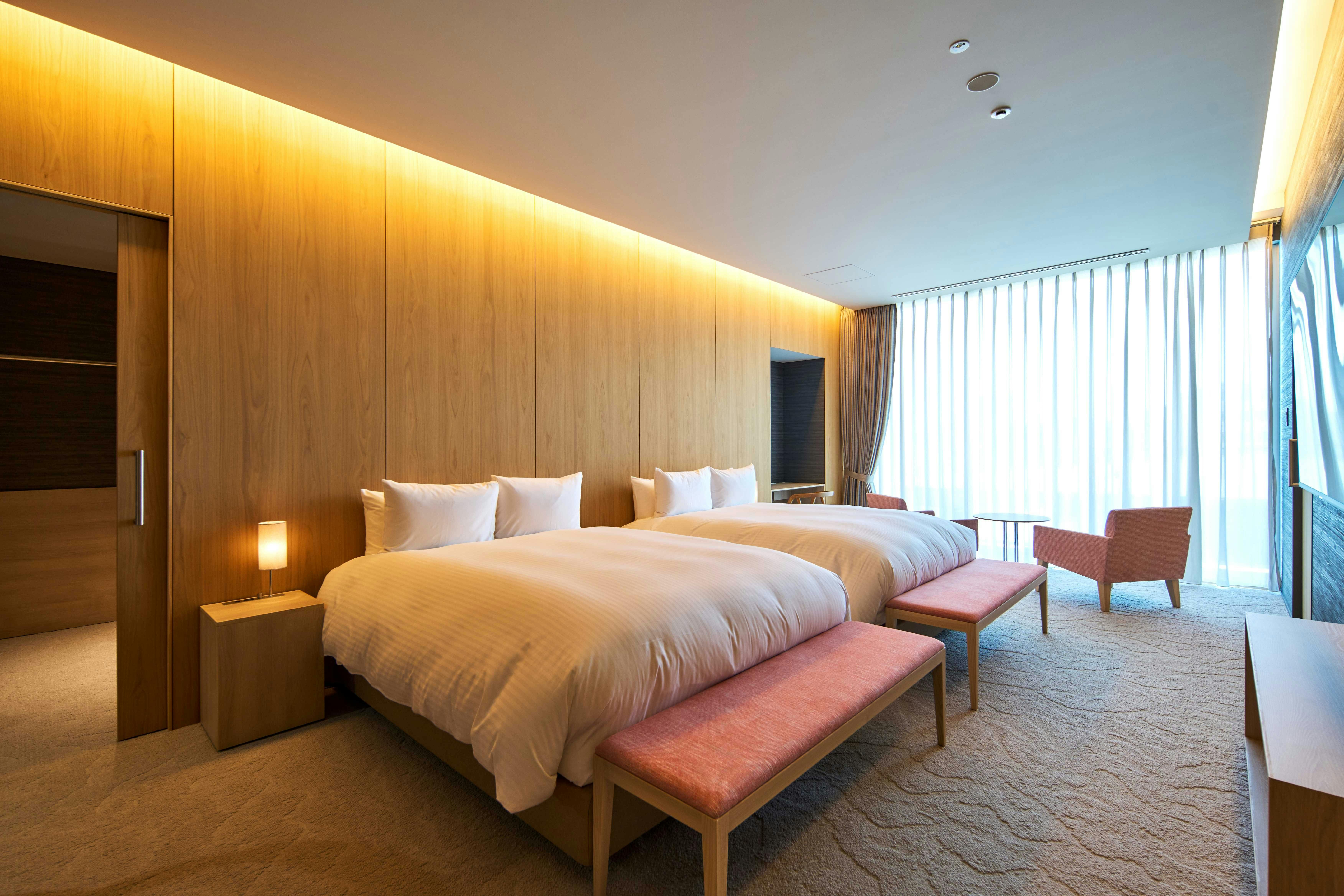 2024年4月23日オープンの新館には、屋内ジェットバスを完備した「プレミアム・ツインルーム」17室「プレミアム・スイートルーム」1室が登場。宿泊者専用ロビーラウンジは、街の喧噪とは一線を画した静寂の中の凛とした空間。美しいだけでなく、かつてないほどの感動を約束してくれます。