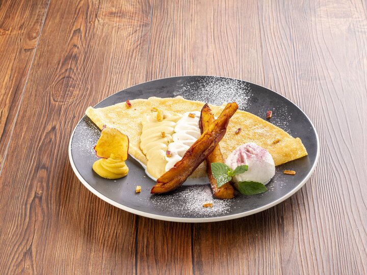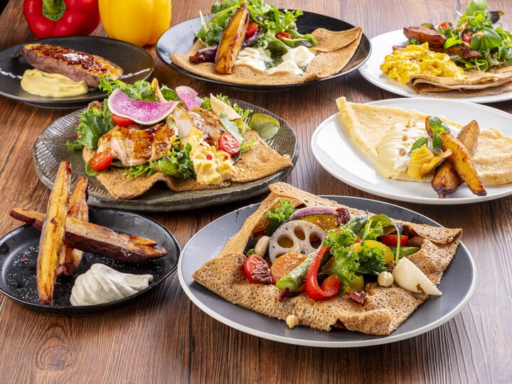 「有機野菜とラタトゥイユ」は、有機野菜をたっぶり使って色鮮やかに仕上げたお食事ガレット。野菜の旨みと自然な甘みがラタトゥイユと相まって、食べ進めるほどに、ガレットの生地と混ざり合い、口の中で一体となります。そば粉の香りが美味しさをさらに引き立て、深い味わいになります。