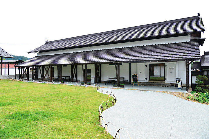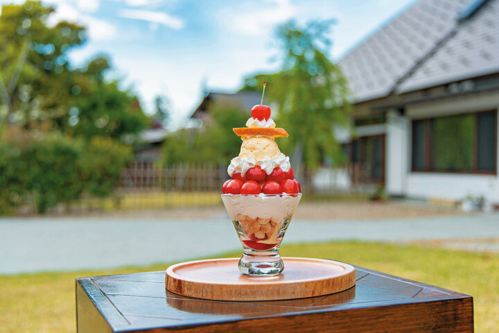 旧家の酒蔵を利用して建てられた複合施設。美しい庭園が広がる敷地内にあるカフェでは、6月に期間限定で登場するさくらんぼスイーツとドリンクが好評です。