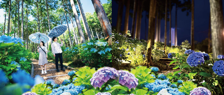全長400m、日本一の歩行者専用つり橋「三島スカイウォーク」にて「あじさい祭」が開催。7,000㎡の森の中の散策路に咲き誇る、ここでしか見られないオリジナルのあじさいの品種「スカイウォーク」「覇王」「夏空」を含む205品種13,000株のあじさいを楽しむことができますよ。 6月21日(金)~7月7日(日)までは、夜のライトアップも行われる予定です。