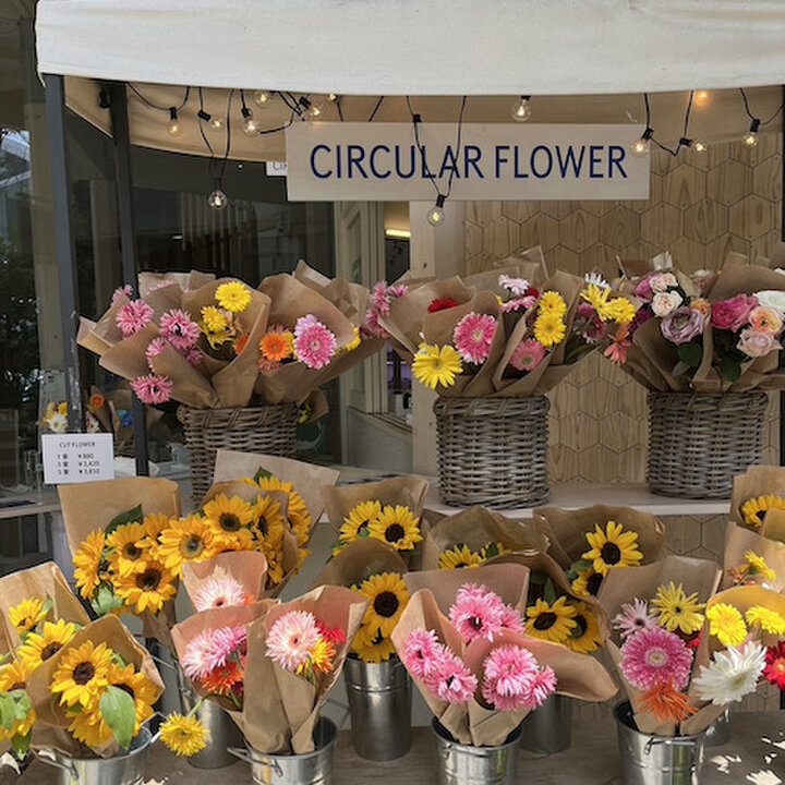 昨年、代官山駅前にオープンした『TENOHA代官山』はサーキューラーエコノミーをコンセンプトにした、循環型社会を気軽に感じることができる施設。 そこにオープンしたのがサスティナブルな花「ロスフラワー」を提供する『CIRTY FLOWERS』です。 「ロスフラワー」とは茎が曲がっていたり、葉っぱが虫に食べられて穴が空いていたりする規格外のもの。さらに過剰な生産量により売れ残ったものやイベントや展示の装飾で短期間のうちに処分されるもの、植栽の剪定時に切り落とされるもののことです。 「ロスフラワー」と呼ばれる花でも、それぞれ個性があって、とってもきれい! ロスフワラーに新たな居場所を作る、そんな花屋を目指しているんだそう。