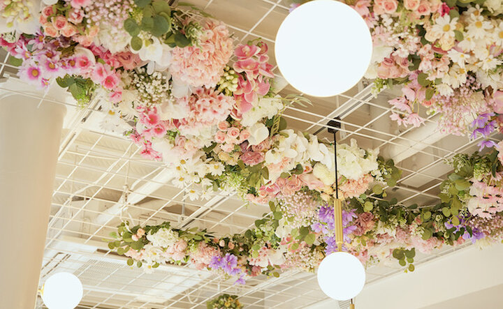 シャルルさんは花を愛しているため、店内にはまさに華やかな花に包まれています。 ゴールドとピンクを基調にしたカラーリングが、気分をスイートにしてくれますね。 お店にはソムリエもいて、アルコール類も提供。いろいろな過ごし方ができる場所です。