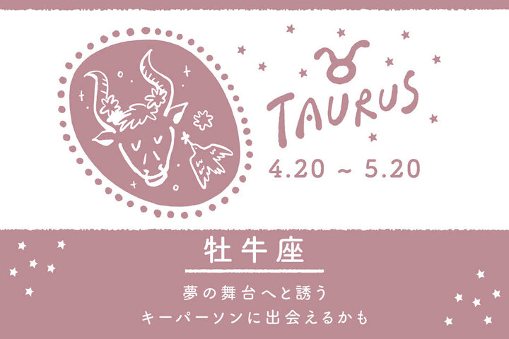 雑誌で見た景色やSNSで目に止まった投稿など、ちょっとしたことがきっかけとなり宝探しがスタートする運命。そんなワクワクする旅を、ていねいに深く掘り下げていくことが牡羊座に与えられた星たちからのタスクとなります。7月ごろ、月の影響で心がセンシティブに揺れ動く場面があるかもしれませんが、ここで諦めてしまうと運勢が後退してしまいそう。立ち止まることなく、自分が信じる道を真っすぐに進んでいって。