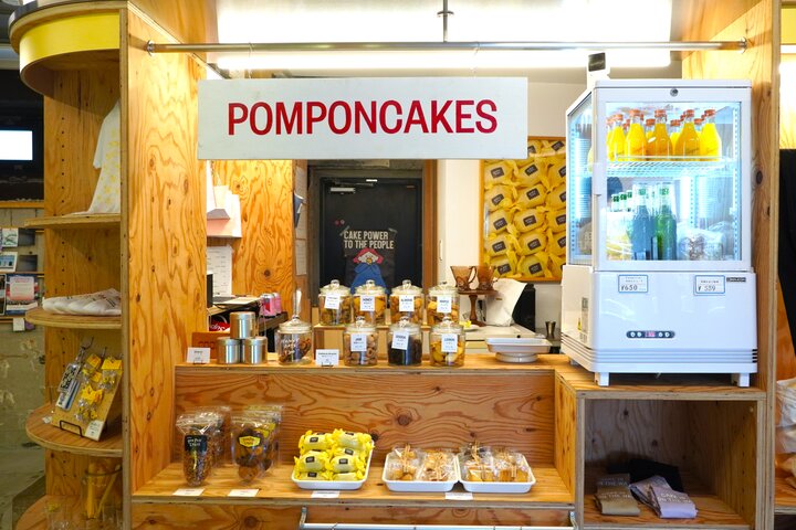 売店のようなカウンターにスイーツが並ぶ「POMPONCAKES GARE」。鎌倉の梶原エリアにある本店「POMPONCAKES BLVD(ブールバード)」の姉妹店で、本店で焼いたクッキーやケーキが楽しめるほかギャラリーも併設しています。