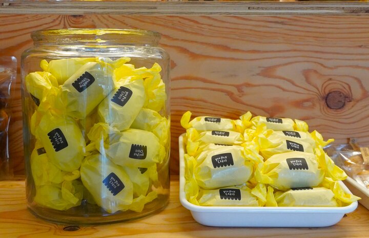 そんな街の風情を感じながらのイートインは、好きなお菓子を選んでのんびり味わって。レモンの風味がさわやかな「レモンケーキ」は、無農薬で栽培した国産レモンを贅沢に使います。フレッシュな果汁はもちろんのこと、皮もレモンピールにして生地に混ぜて焼き上げています。