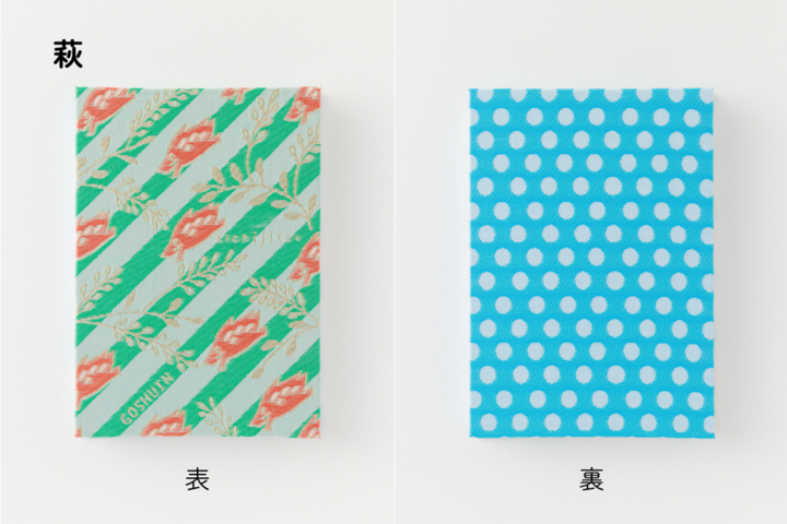 生地は、日本屈指のハタオリのまち・富士吉田で作られる、高品質な織物を使用しています。掛け軸の生地や和装小物など、和物の生地が得意な会社が手掛けるアイテムです。