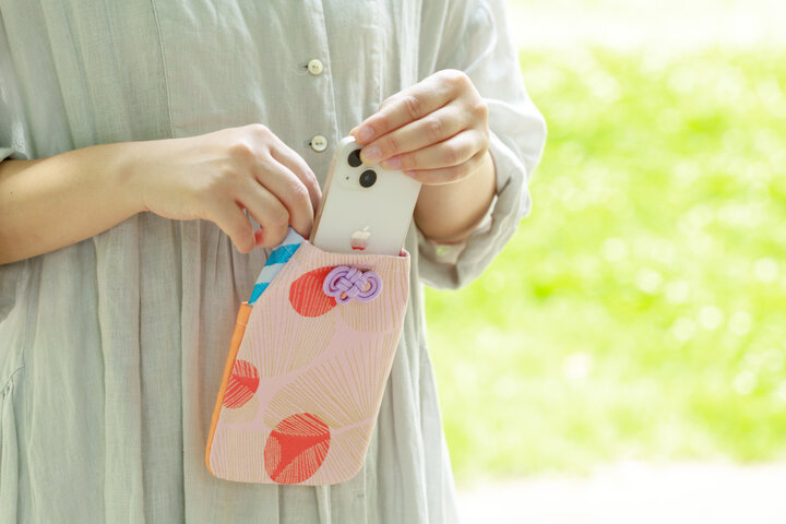 神社でいただくお守りがそのまま大きくなったような形の「おまもりぽっけ」は、大切なものを守るモバイルポーチです。 スマートフォンやお財布を入れることができて、厚手の生地が中身を守ってくれます。