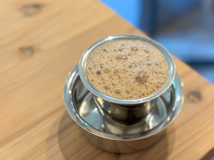 カリーセットのドリンクは、コーラ、ジンジャエール、ラッシー、チャイ(HOT or ICE)があり、おすすめはインド式ミルクティーの「チャイ」。アッサムの茶葉とスパイスを水からじっくりと煮出した後、たっぷりの牛乳と砂糖を入れ吹きこぼれないように煮詰めたものです。 スパイスが効いたチャイは、しっかりとしたコクと深みがあり、やさしい甘さにほっこり癒されます。ぷくぷくとしたクリーミーな泡は空気が多く含まれているので、まろやかな口当たり。スパイシーなカレーを食べた後は口の中の辛さが中和され、食後の一杯にもぴったりです。