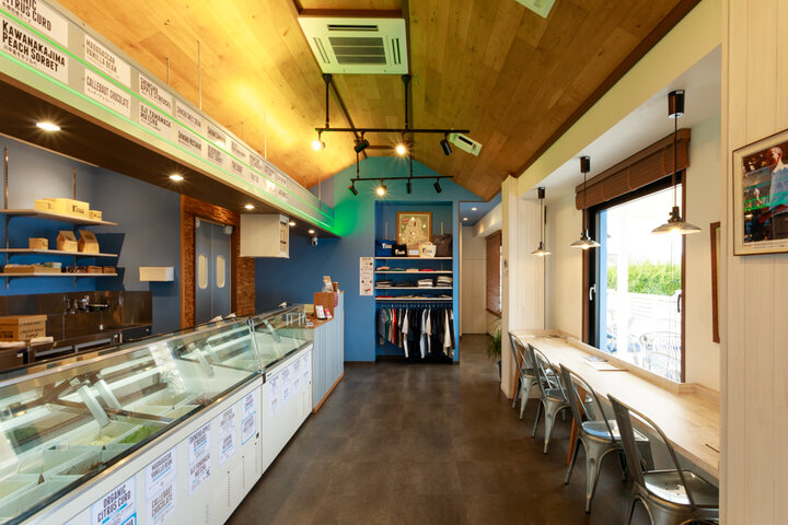 アメリカ合衆国のメイン州などで3店舗を展開する「MT.DESERT ISLAND ICE CREAM」は、アメリカのグルメ誌で「全米トップ25のアイスクリームパーラー」にも選ばれた人気ショップです。 日本支社長を務めるアメリカ人のケルトン・ボイヤーさんは、現地の代表と友人だった縁で、2019年に長野県松本市の縄手通りに海外進出一号店となる松本店をオープンしました。松本に続いて2022年にオープンしたこちらの安曇野店は、ショップの裏にアイスクリーム工房を併設しています。