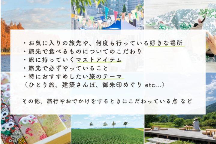 ぜひみなさんの旅のこだわりや必ず旅でやることについても、したためていただけたら嬉しいです♪