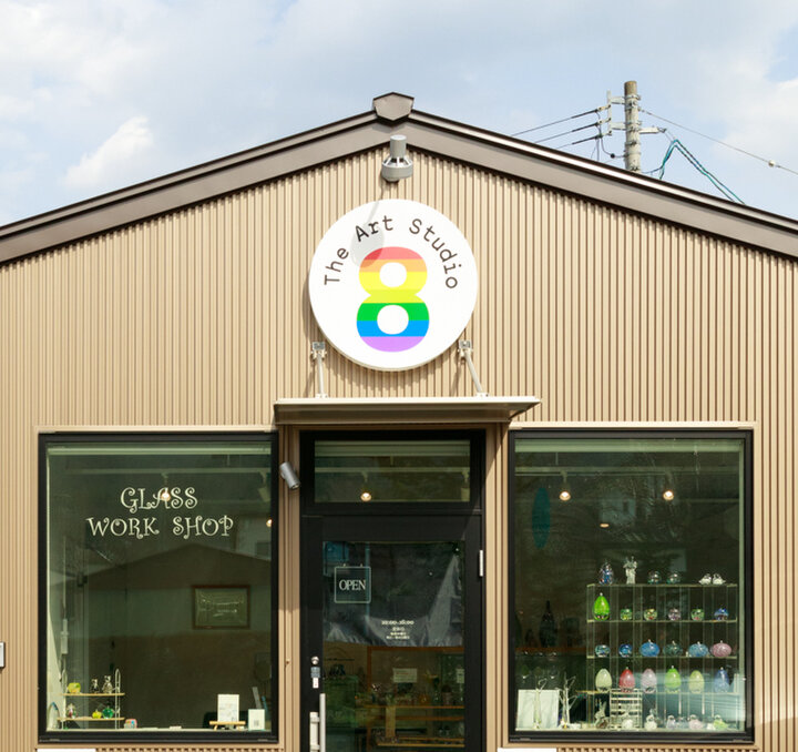 「The Art Studio 8」(ザ・アートスタジオ・エイト)は、カフェやギャラリーが集まる県道・山麓線沿いに、2021年にオープンしたガラス工芸の小さなギャラリーです。 店内には、オーナーであるガラス作家・原田哲治さんの作品をはじめ、地元のガラス作家さんたちの透明でカラフルな作品の数々が展示販売されています。