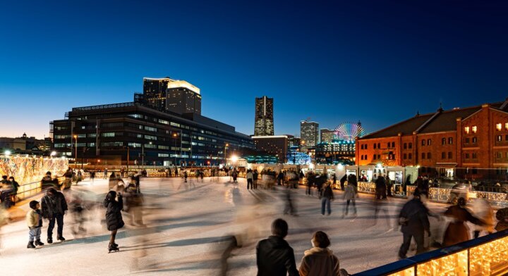 多彩なアーティストが繰り広げるアートとアイススケートのコラボレーションが楽しめる「アートリンクin横浜赤レンガ倉庫」。さまざまな色・形がリズミカルに配置された切り絵をもとにしたアートワークに彩られたアートリンクで、アイススケートができますよ。
