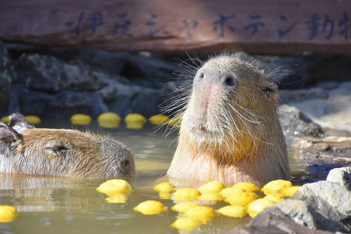 1982年に元祖として「カピバラの露天風呂」がスタートして今シーズンで42年。伊豆シャボテン動物公園では、今や“伊豆の冬の風物詩”としておなじみとなった、カピバラたちが気持ちよさそうに湯船でくつろぐ「元祖カピバラの露天風呂」を、2024年11月1日(金)~11月4日(月・祝)、11月9日(土)と11月10日(日)、そして11月16日(土)~2025年4月6日(日)の期間開催しています。 イベント期間中、平日は13時30分からの1日1回、そして、土曜・日曜・祝日と、冬休みおよび春休み期間には、10時30分からと13時30分からの1日2回開催します。