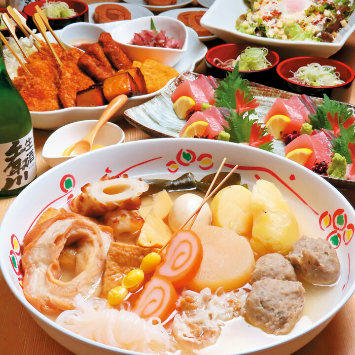 創業は1964(昭和39)年、金沢市内に4店舗を構える人気店。おでんをはじめ金沢ならではの食材を使った料理がそろい、金沢の地酒も豊富です。おでんは通年のメニューとして20種以上あり、夜だけの限定メニューです。