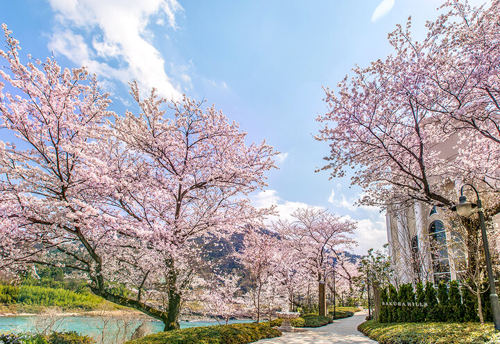 敷地内には桜並木や昭和レトロ建築も。木曽川沿いのテラスでお花見ランチ&ティータイム「サクラテーブル」