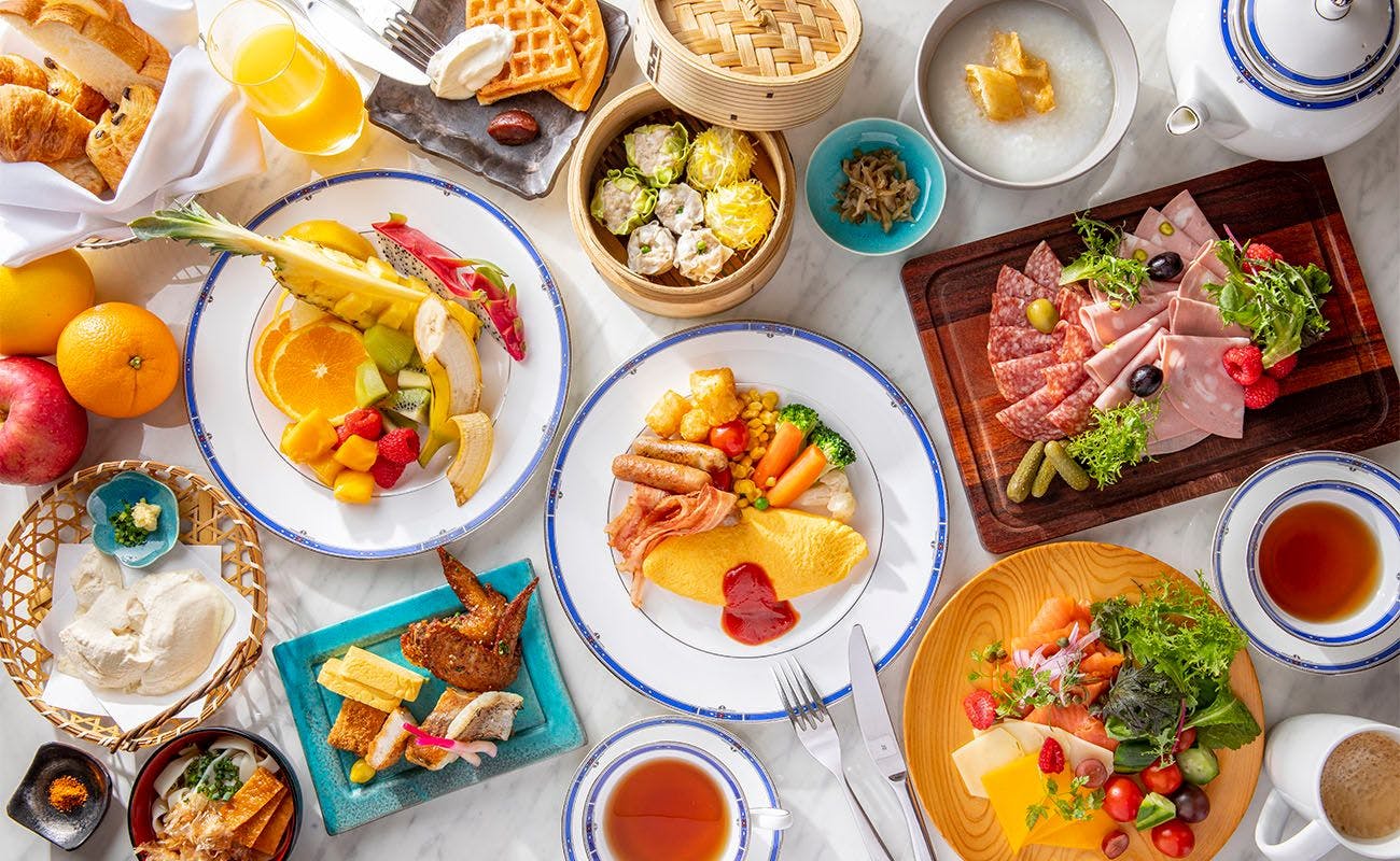 朝食は、天井高12メートル以上、3階まで吹き抜けの開放的なレストランにて和洋ブッフェスタイルを楽しめます。愛知県を中心に厳選された食材を使ったメニューは80種類以上もあり、どれにしようか迷ってしまうこと必至。「きしめん」や「味噌カツ」など、朝から名古屋のご当地グルメを堪能することができます。