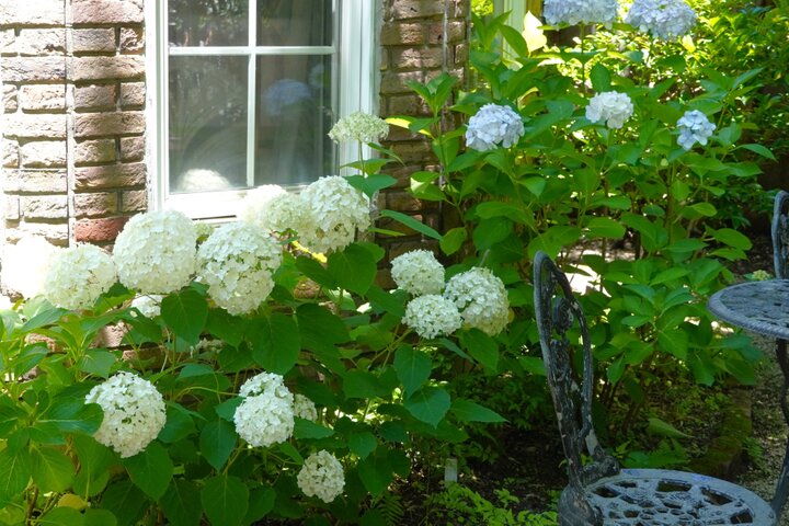 北鎌倉のアジサイは青色のイメージが多いなか、白色のアジサイを見られるのが「北鎌倉 葉祥明美術館」の庭です。絵本作家であり画家、詩人として活躍する葉祥明氏の優しい世界観を鑑賞する美術館はレンガ造りが印象的で、葉祥明氏の設計案の元に建てられたのだそう。窓辺には清楚な白色のあじさいが咲きそろいます。