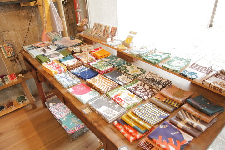 お腹が満たされたら、さんぽを続けましょう。京王線つつじヶ丘駅から徒歩12分ほどの「kata kata(カタカタ)」は、松永武さんと高井知絵さんのご夫婦による染布ユニットのアトリエショップ。身近な風景や生き物をモチーフに型染めや注染など伝統的な方法で布を染め、会話や物語が生まれるきっかけになりそうな作品を作っています。