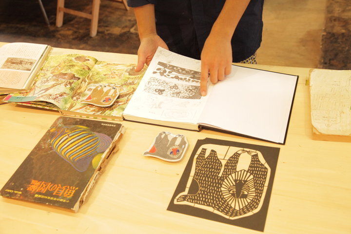 図鑑を参考にすることも。リアルを把握した上でスケッチを繰り返し、自分の図案に仕上げる(撮影:彌永浩次)