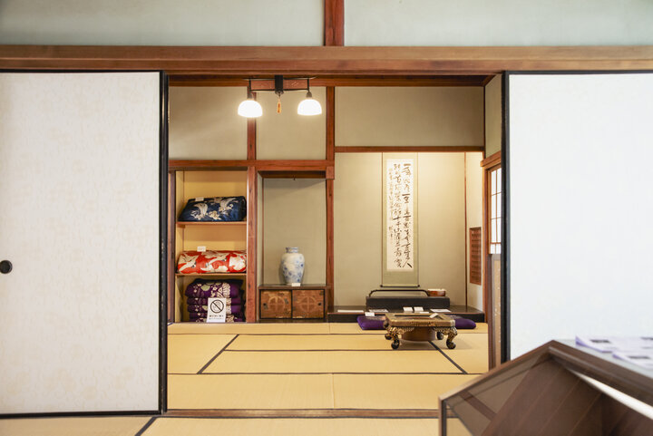 文化のみち二葉館の特徴のひとつは、洋風と和風の空間を備えた和洋折衷。移築された部分と復元された部分があり、建物中央の和室は創建当初のままで、国の文化財として登録されています。 こちらには調度品や愛用品の実物やレプリカが置かれ、当時の暮らしを再現しています。華やかな洋室と比べると、趣のある品々に囲まれて落ち着ける空間。2人のことを思い浮かべながら、こだわりの品々をじっくりと眺めたくなります。