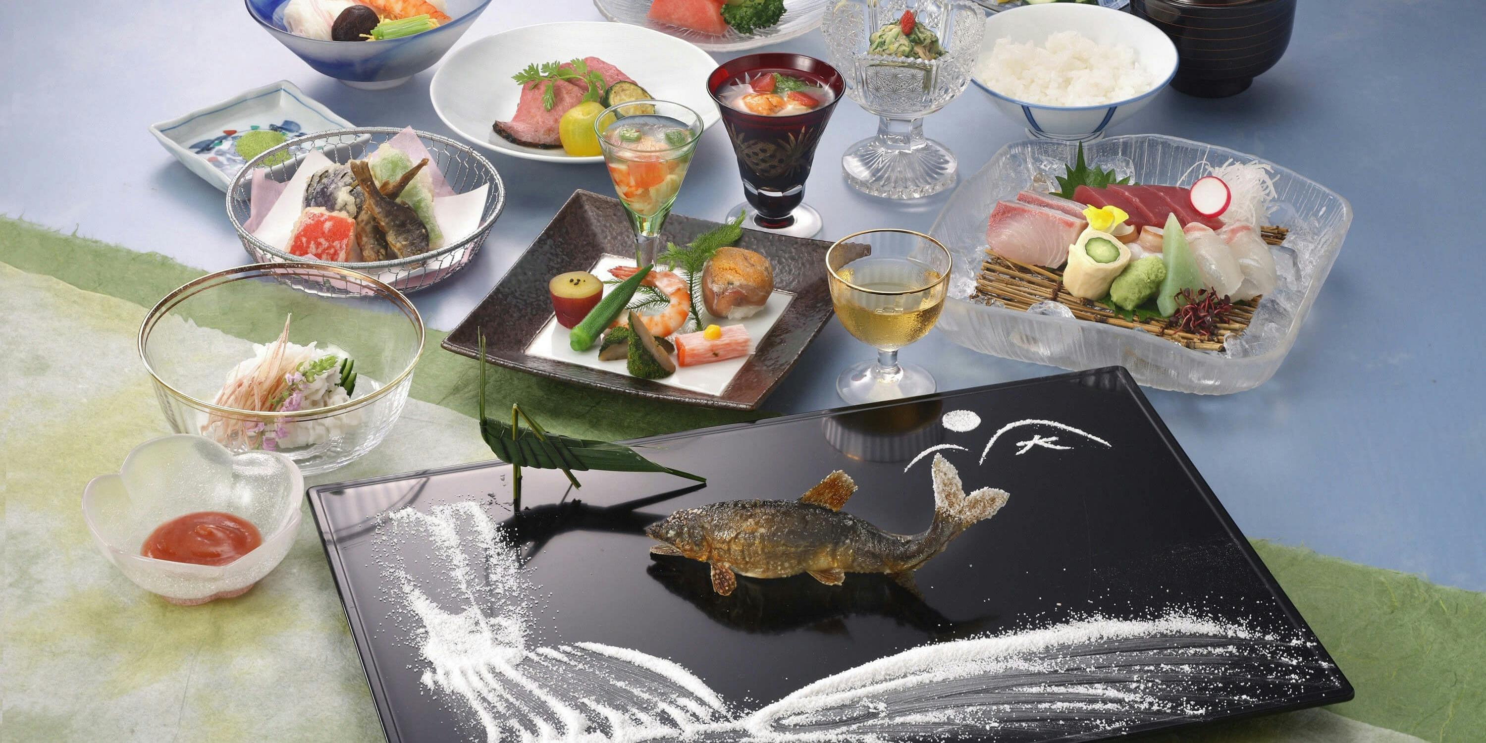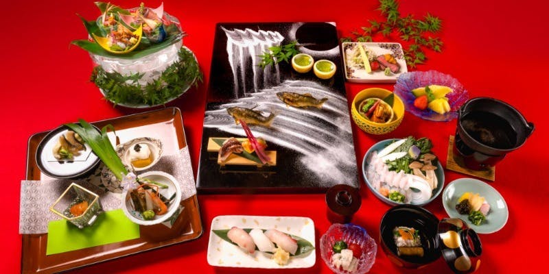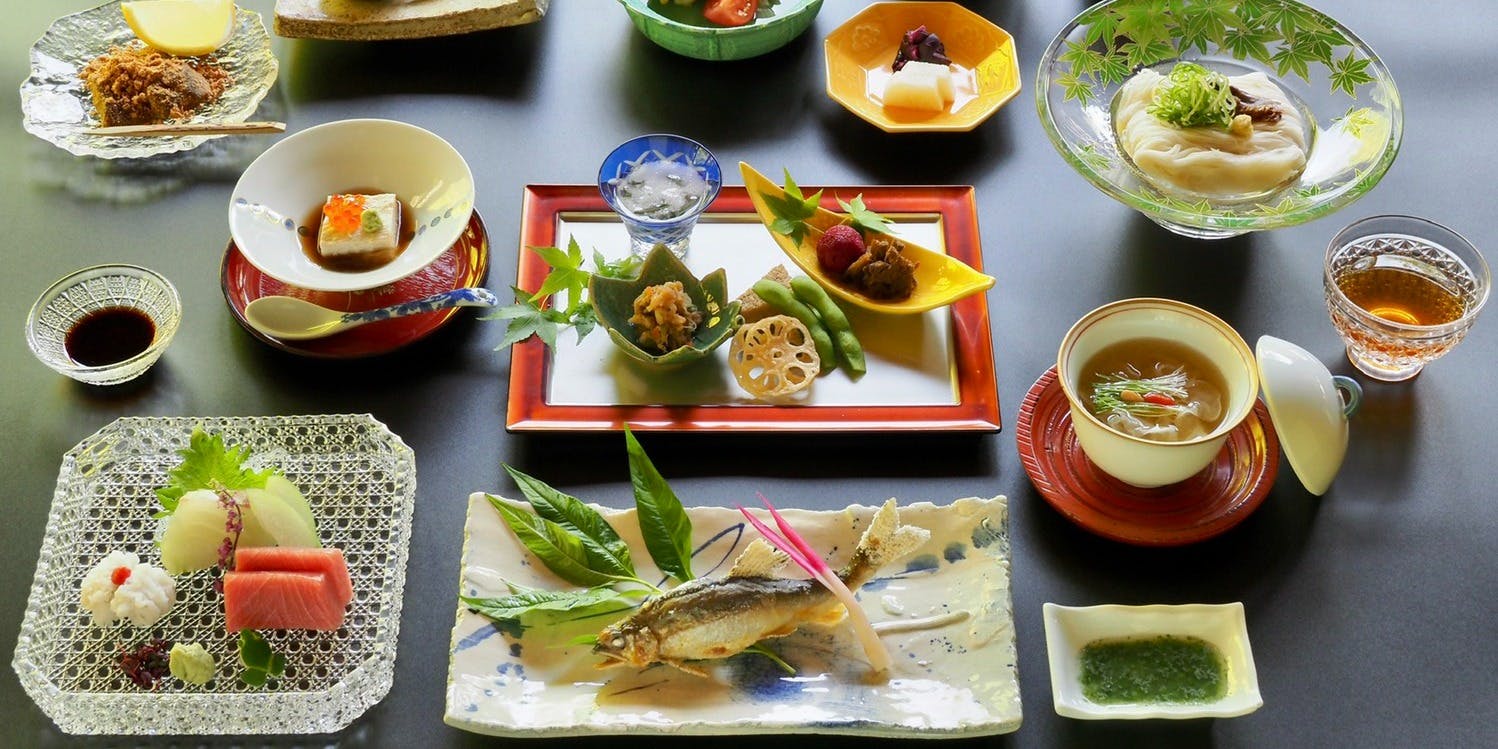 平安時代の歌人和泉式部がお参りをしたといわれる霊験あらたな京都洛北貴船の地は、一千年の時を経てもなお往時の自然を彷彿させる、川のせせらぎと、豊かな緑に覆われています。料理旅館「右源太」では、涼風あふれる「川床」に活川魚料理を用意。全10品の川床懐石料理では、先付、前菜、吸物、お造り、焼肴、お凌ぎ、揚物、酢物、食事、水物を楽しむことができます。