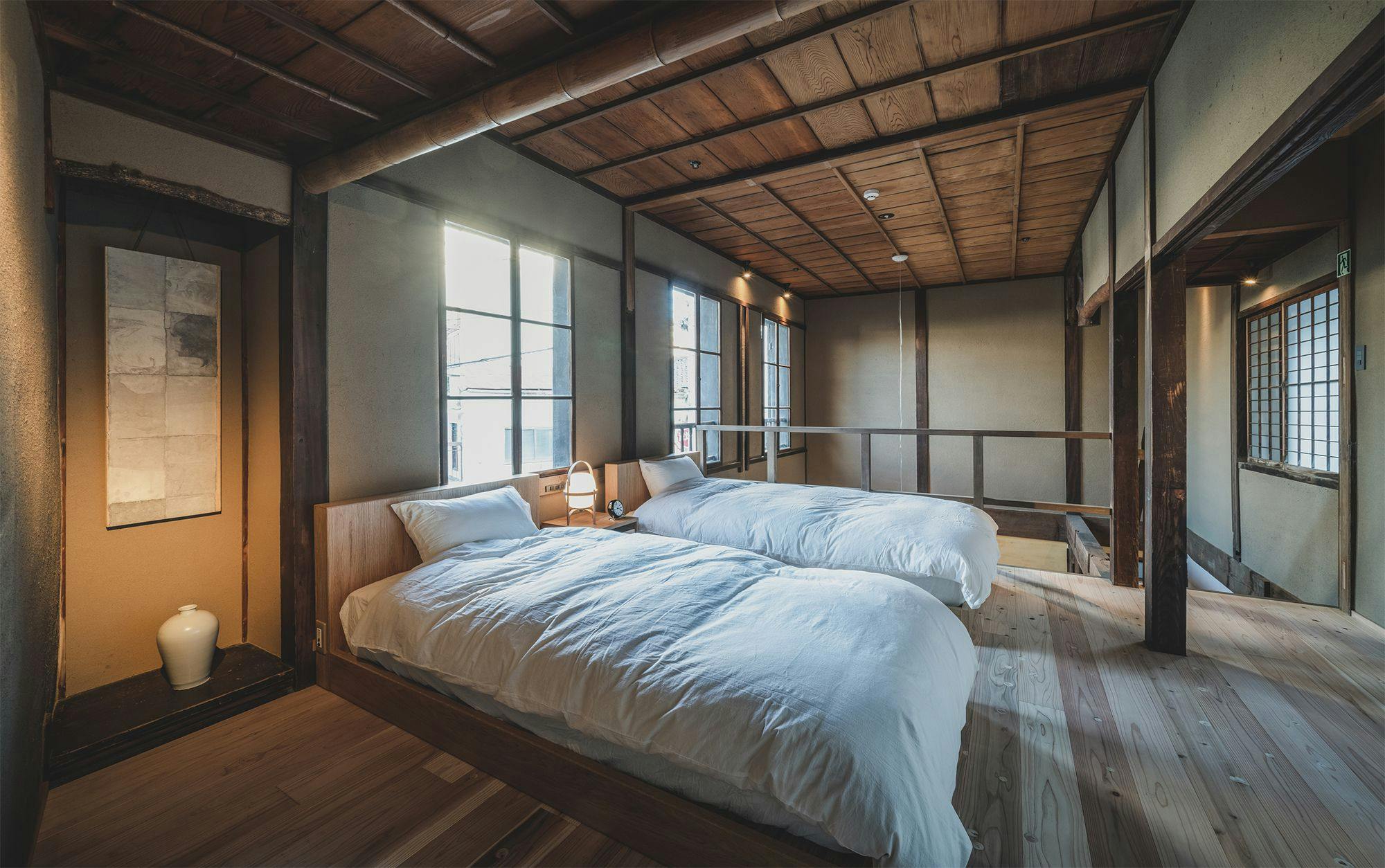 客室は2025年3月末リニューアルオープン。北欧のミニマルな機能美と、日本の侘び寂びの心が溶け合う、ジャパンディスタイルのお部屋でくつろぎの時間を過ごすことができます。西洋人私邸の一室のような日常を忘れられる至福のひとときを提供しています。