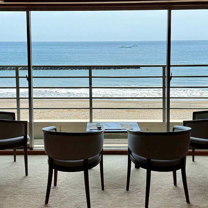 金目鯛のお刺身は、少し残して、最後は出汁茶漬けに。朝食の締めに、さらりといただく金目鯛の出汁茶漬けは、旅の余韻を刻む1杯になることでしょう。 目の前に広がる海を眺めながら、温泉と美食に癒される「海遊亭」。客室数は12室と少なく、落ち着いた空間で、癒やしのステイを楽しめますよ。