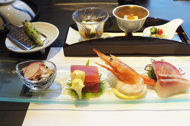 他にも、料理歴30年以上の料理長が手がけるのは、和食の概念にとらわれない、おいしさと感動に満ちた逸品。たとえば、茶碗蒸しにクリームチーズやバジルといった洋風の食材を取り入れるなど、「あっ!」と驚く組み合わせで、多くのゲストの心と胃袋をつかみます。