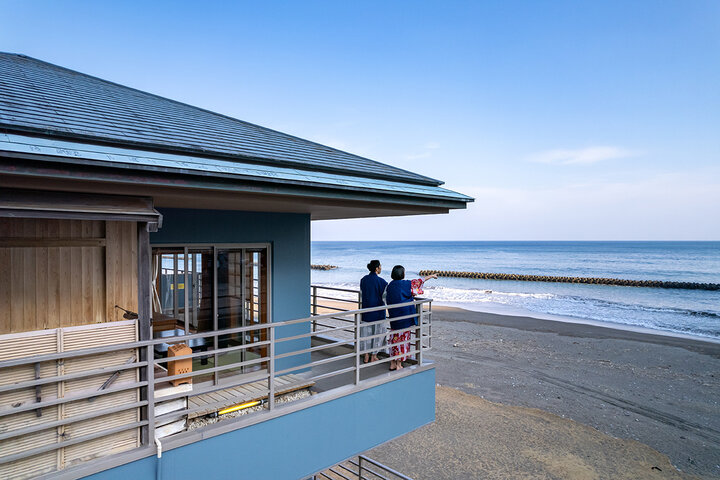 駅からすぐ、海と空が出迎える癒やしの温泉宿
