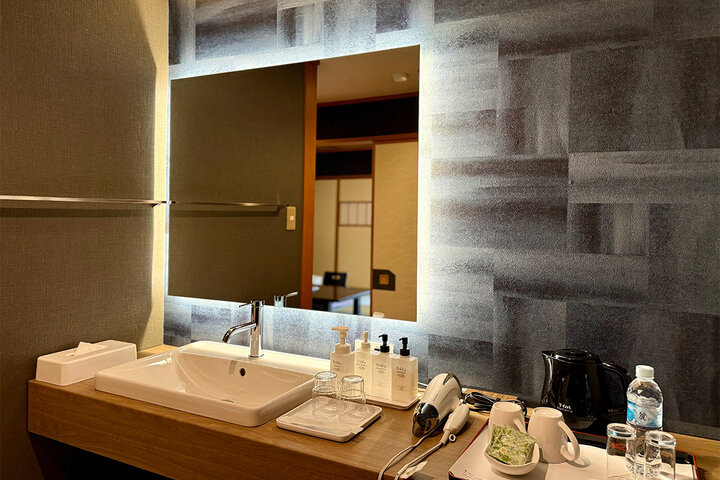 「スタンダード モダン和室」には、掘りごたつ風のテーブルが備え付けられたお部屋もあります。この部屋は、足を楽に伸ばしながらくつろげる設え。長時間座っても疲れにくく、まったりとくつろげます。