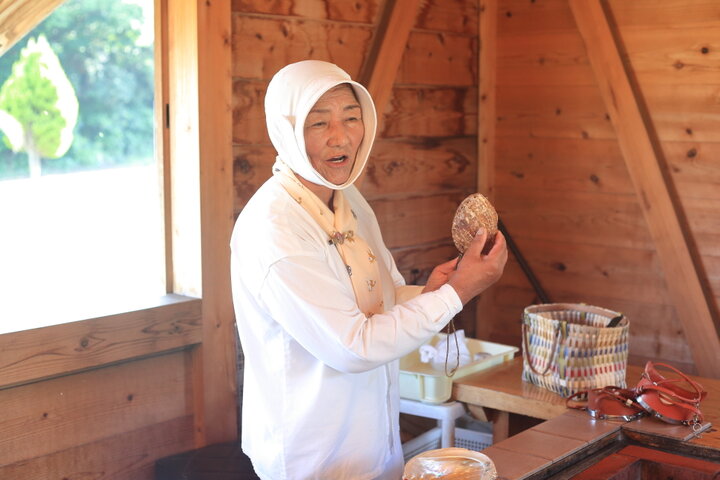 みわこさんは現役の海女さんなので、海が年々変化していることや、海女さんの日々の暮らし、海女漁の方法などさまざまなことを教えてくれました。夫婦で舟に乗って漁をしたり、海岸から海に潜ったりと、海女漁といってもさまざまな漁法があること、海を守るために稚魚の放流や海の清掃などさまざまな活動を行っていることなど、海と共に生きている海女さんの凄さ、たくましさを知ることができましたよ。