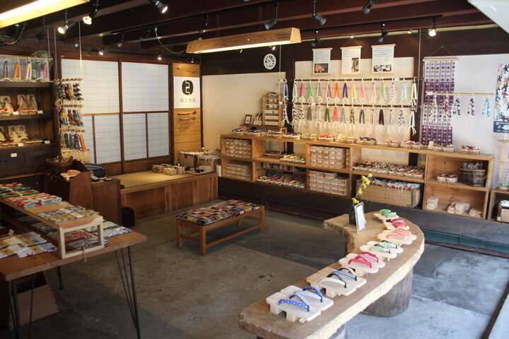 築100年ほどの建物。広い土間には下駄や鼻緒がずらり