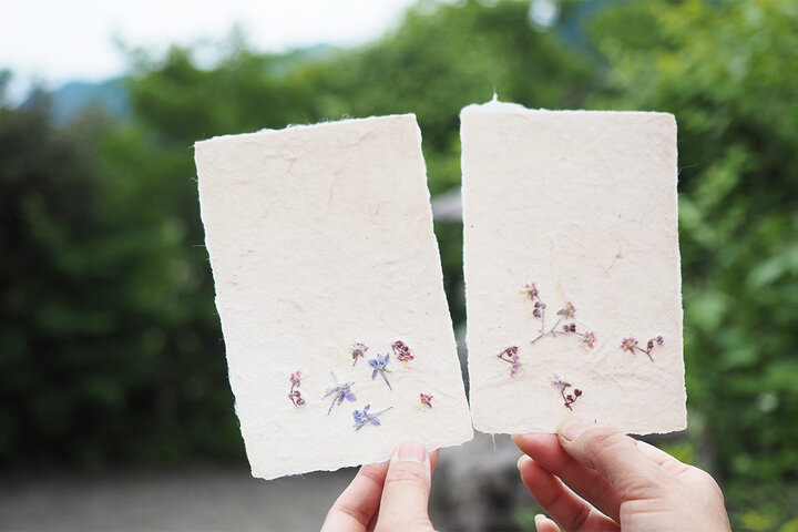 和紙に野花を漉き込むと、その日の空気まで閉じ込めたような気持ちに