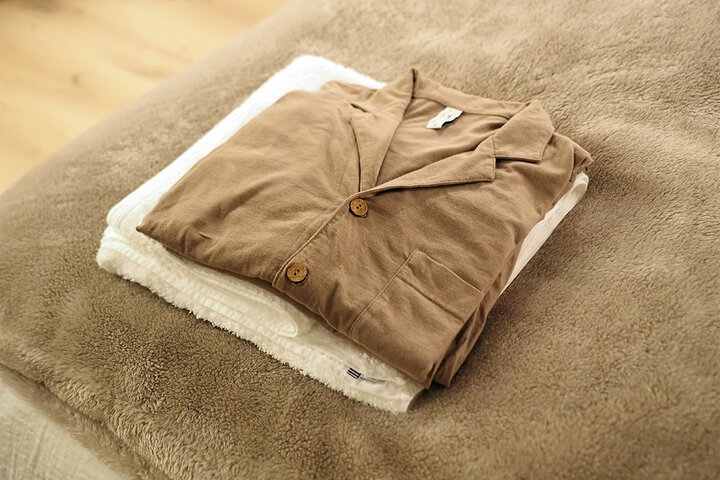 部屋着は、オーガニックコットン100%の素肌にやさしくなじむ一着。肌に触れた瞬間、ふっと力が抜けて、着ていることを忘れるくらい軽い♪