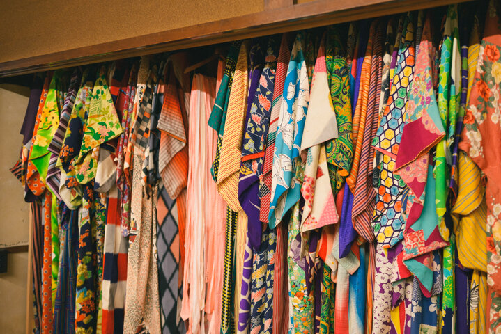1階には、アンティーク着物のレンタルと着付け、販売を行う「ORGANキモノ」も。昭和時代のレトロな柄の着物と、古いものではありませんが伝統的な柄が中心の浴衣がそれぞれ50着以上そろっています。川原町の古い町並みに似合う和の装いに着替えて、街歩きしてみるのもいいですね。和傘CASAでは、和傘のレンタルをしているので、あわせてコーディネートするのもよさそうです。レンタルは完全予約制なので、事前に予約してでかけてくださいね。