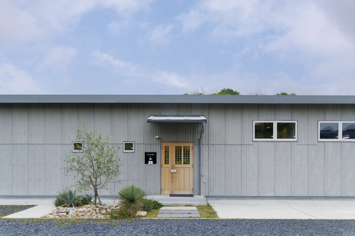 公共交通機関で出かける場合は、信楽高原鐵道の雲井駅から北へ歩いて8分ほど、車なら信楽ICから5分。日本最大級の信楽焼のたぬきが並び立つ「信楽陶苑たぬき村」の、道を挟んだ向かいに「aoikuma」はあります。かつて倉庫として使われていた建物を改装し、2023年にオープンしました。