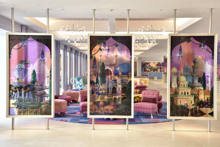 “夢”や“ファンタジー”をテーマにした館内は、東京ディズニーランドと東京ディズニーシーにある、アトラクションや施設をモチーフにした装飾で満たされています。パークで遊ぶときに、より楽しみが増すようなロビーや客室を見てみましょう。 エントランスを抜けると、ロビーにはパークを思わせるアートやインテリアが広がります。思わず、パークで遊んだことを思い出して、記念写真を撮りたくなりますね。ロビー内に流れるBGMは、パーク内と同じ物が流れているのも、心憎い演出です。