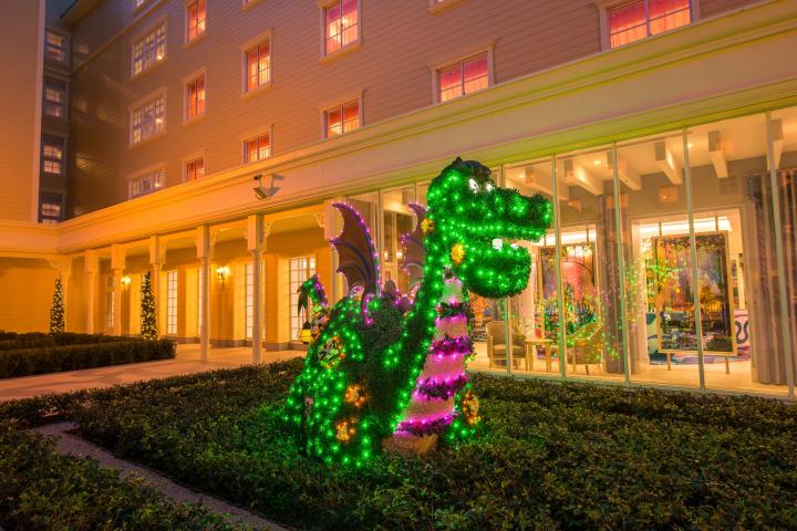 ライトアップされた『ピートとドラゴン』のエリオットのトピアリー