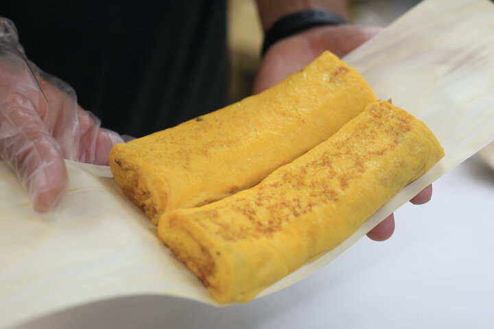 お店では早朝から店頭で玉子焼きを焼いていて、朝8時ごろまでに行けば焼いている様子も見ることができますよ。焼き立ての玉子焼きはふわふわ熱々。出汁が効いていますが少し甘めの味が特徴です。玉子をたっぷりと使ったしっとり濃厚なワンランク上の玉子焼き「玉鵬」や「出汁巻」などもありましたよ。早朝で売り切れてしまいますが、この玉子焼きで作ったサンドイッチも数量限定で販売しているので、見つけたらぜひ購入してみてくださいね。