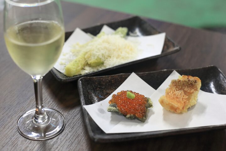 ワインに合うネタがいろいろ。揚げたてが楽しめる「天ぷらとワイン小島」