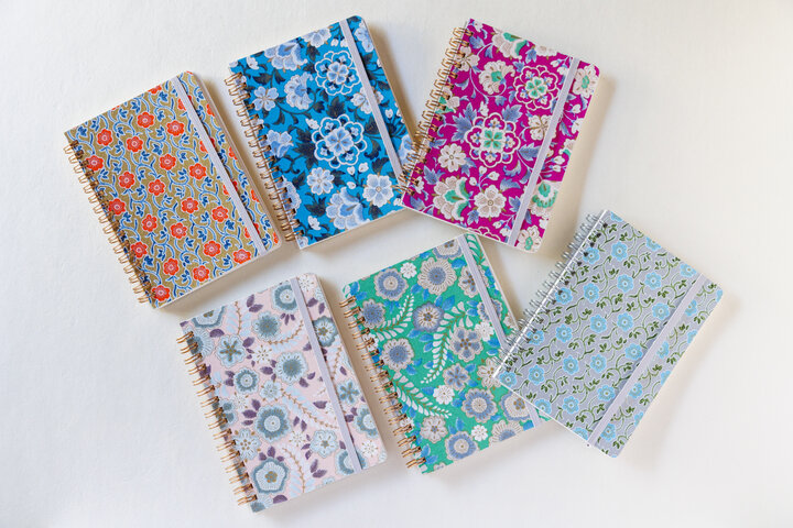 友禅和紙を使った「和綴じのちぎれるメモ」各385円。1枚ずつミシン目が入っていてちぎりやすい