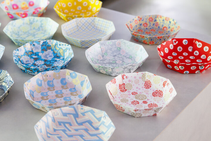 京友禅紙を使った組み立て式トレイ「TUCK」各1430円。小物入れのほか、菓子皿にしてもかわいい