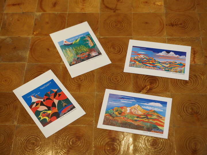 壁を飾るカラフルなアート作品は、仙石原にアトリエを持つDK.KUSUNOKI(楠大八郎)さんが描いたもの。どれも色彩豊かで力強く、見る人の感性を刺激します。気になる方は、楠さんの作品を集めたコーナーもあるので、のぞいてみてくださいね。