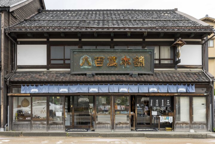 JR金沢駅からバスで約10分、橋場町バス停から歩いてすぐ。浅野川大橋のたもとに「八百萬本舗」があります。 かつて「志村金物店」として営業していた町家をリノベーションし、2015年3月にセレクトショップとして生まれ変わったお店です。町家の趣が残る店内は複数の工房やショップ、作家ものが並び、金沢や輪島など北陸の工芸作家やクリエイターの作品を中心に多岐で、魅力的なアイテムがそろっています。