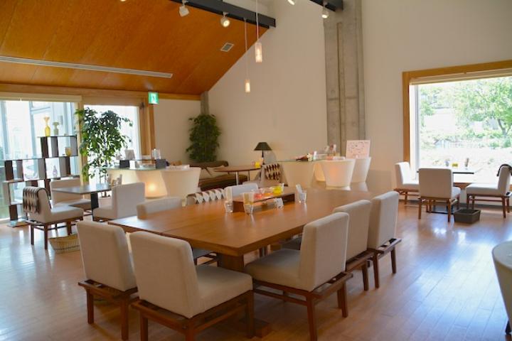 ゆったりとくつろぐことができる併設のカフェ